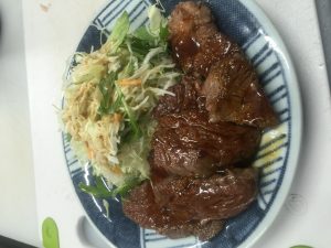 8月24日の夜の日替わり定食は…牛サガリステーキ定食です。